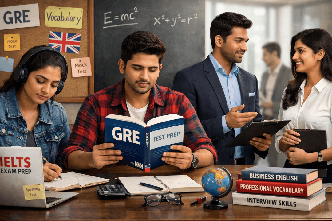 Special modules for competitive exams (IELTS, GRE, etc.) and professional vocabulary to improve communication skills.